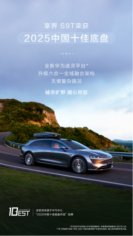 享界S9T基于全新一代华为途灵平台,六合一全域融合架构与全新连续可变阻尼减振器+空气悬架相结合,带来轿车般的灵活操控。零百加速3.95s,麋鹿测试83.3km/h,兼顾性能与稳定性。在2025中国十佳底盘评选中,享界S9T凭借卓越的动态操控与出色的驾乘舒适性成功上榜。此次评选由行业专家、媒体代表及用户代表共同参与,从静态表现与动态体验两大维度综合打分,充分体现了享界S9T在底盘调校上的领先实力。