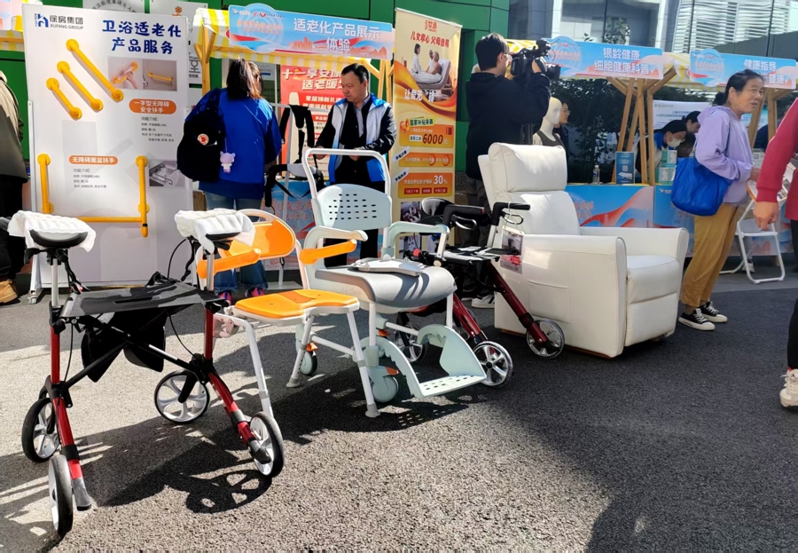 今天是重阳佳节,在漕河泾街道党群中心门前,一场敬老集市展示了健康咨询、中医耳穴体验、适老化产品体验、智能设备展示、涉老公证法律咨询等10余项贴心服务。与集市同步开展的,还有上海市老年基金会两个公益项目——“腺”爱心公益项目与爱心助浴公益项目的启动仪式。